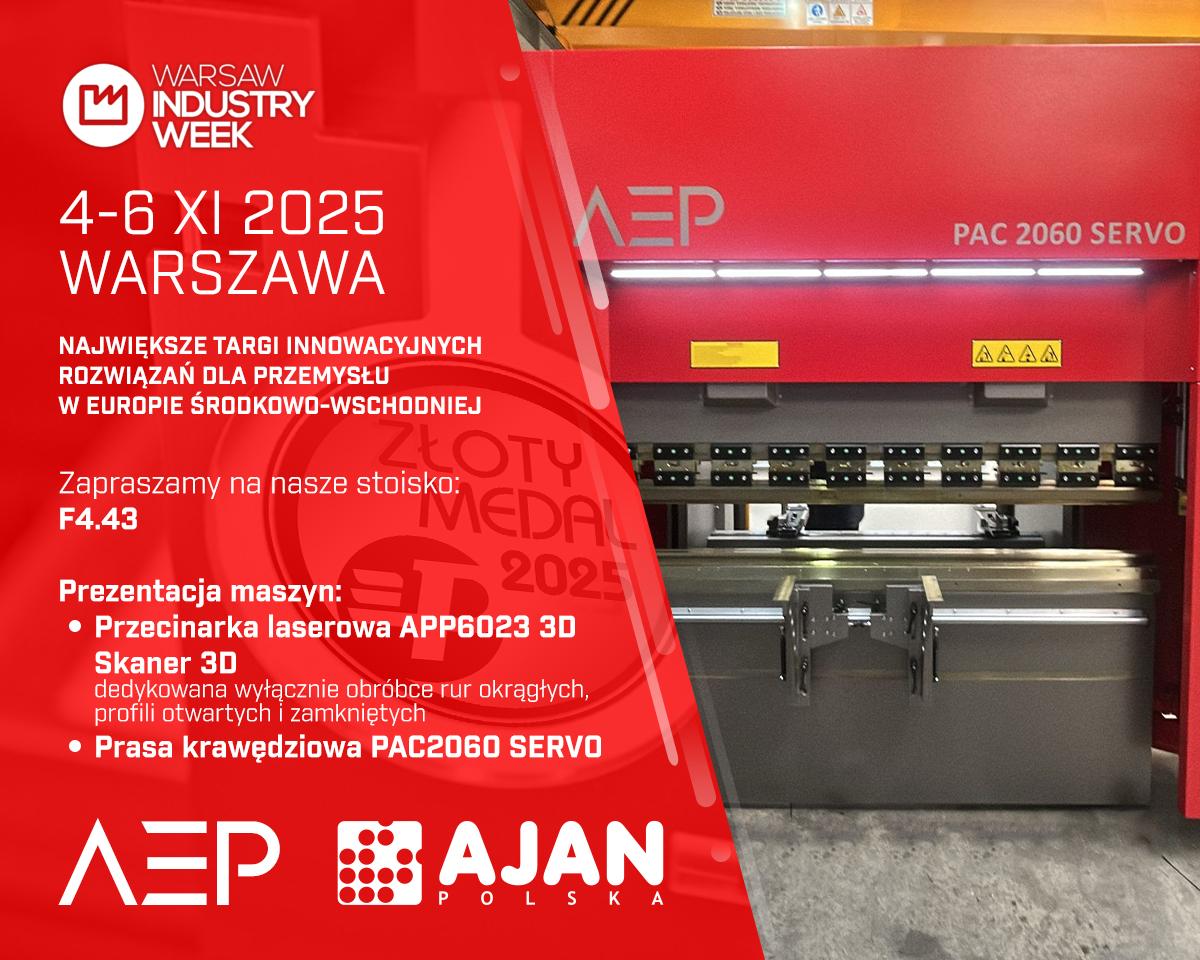 Firma AEP / AJAN Polska serdecznie zaprasza wszystkich klientów, partnerów biznesowych oraz pasjonatów nowoczesnych technologii przemysłowych na targi Warsaw Industry Week 2025, które odbędą się w dniach 4–6 listopada 2025 roku w halach PTAK Warsaw Expo w Nadarzynie k. Warszawy.